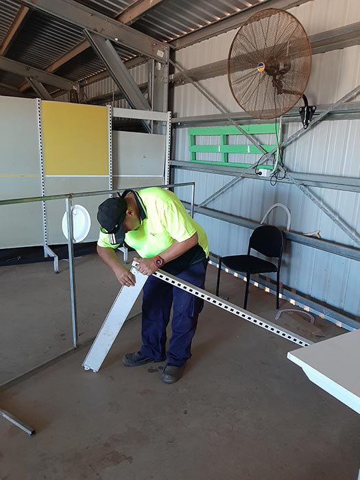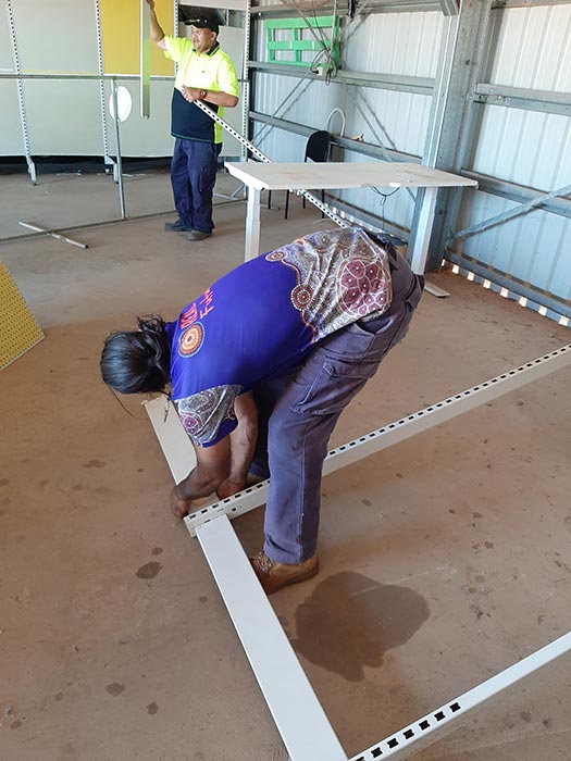 - Real Futures team breaking down shelving for transport